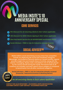 Staying ahead of your competition, regardless of industry or platform, requires that you keep abreast of their actions. At Media InSite our range of ad monitoring services also includes social media ads. With our Social ADviser, you can receive insights on how competing brands are spending their advertising dollars on Facebook, Instagram and other social media platforms, complete with permanent links to all creatives. As part of Media InSite’s 10th Anniversary celebrations, we are offering this service for FREE for the industries we already cover (Financial, Telecommunication and Banking Sector). To find out more, be sure to contact our Sales Department.